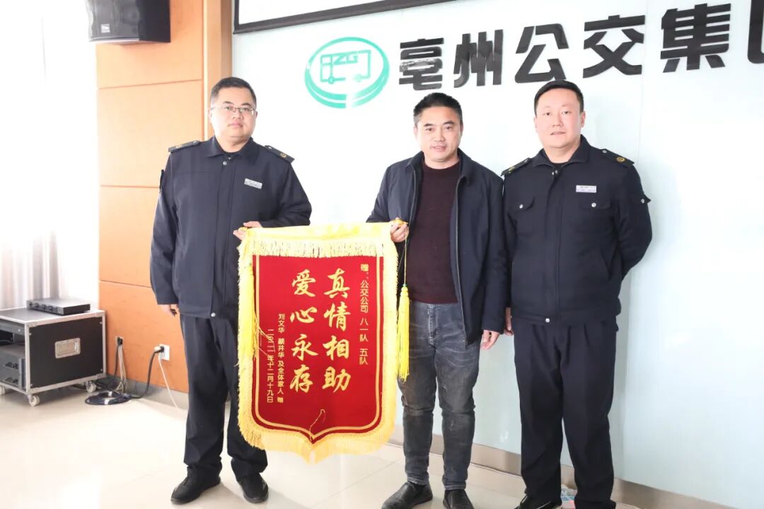 12月21日上午,颜井华夫妇手捧一副锦旗来到了亳州公交集团,感谢公交人的热心帮助。